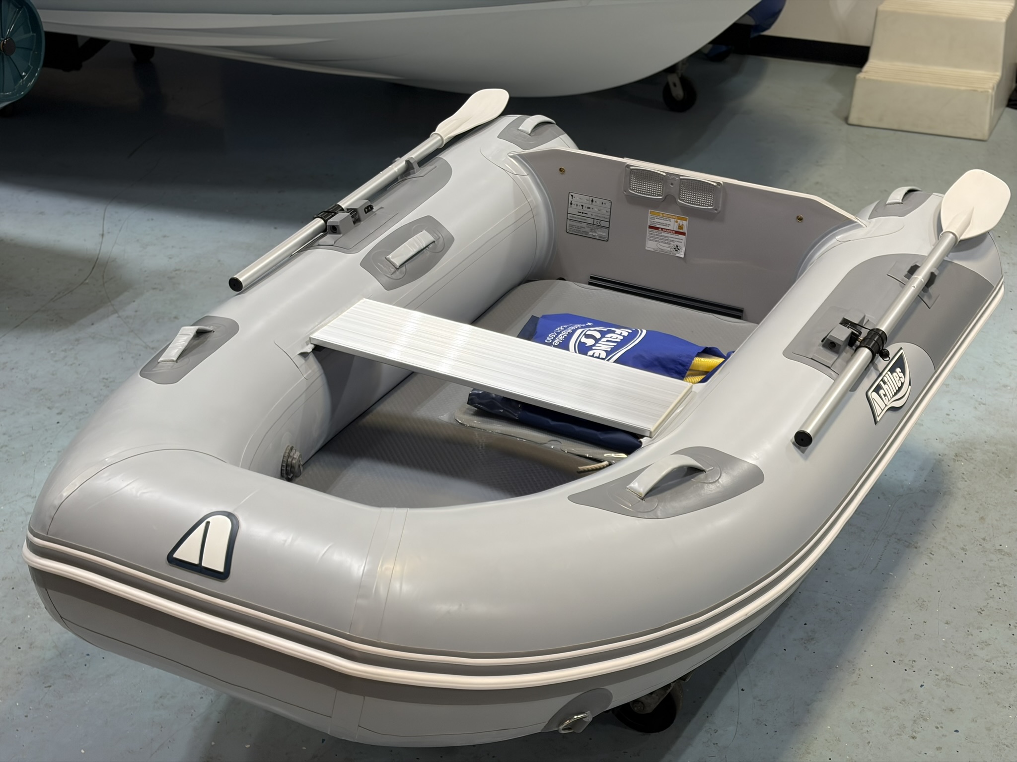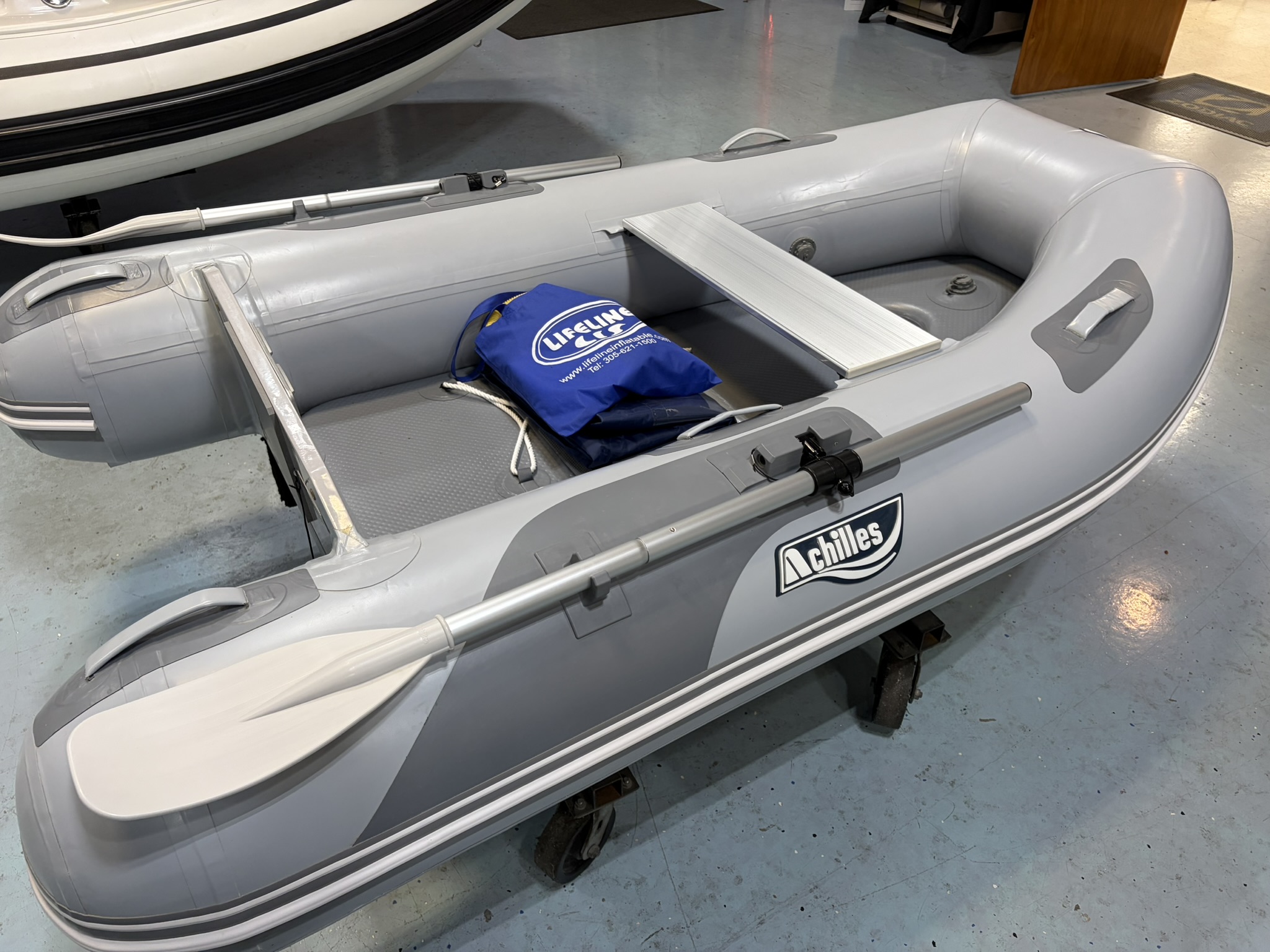 Achilles 2023 Brand New LSI 230 Inflatable Boat with HP Air Floor. Length: 7’7” Weight: 55 LBS 2 Person Max HP: 4 Includes: Boat Bag, Inflation Pump, Seat, Oars, Repair Kit, Fuel Tank Pad.
